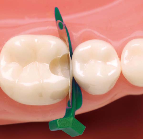 - During insertion, the wing presses the matrix firmly against the preparation, giving a tight seal at the cervical margin.